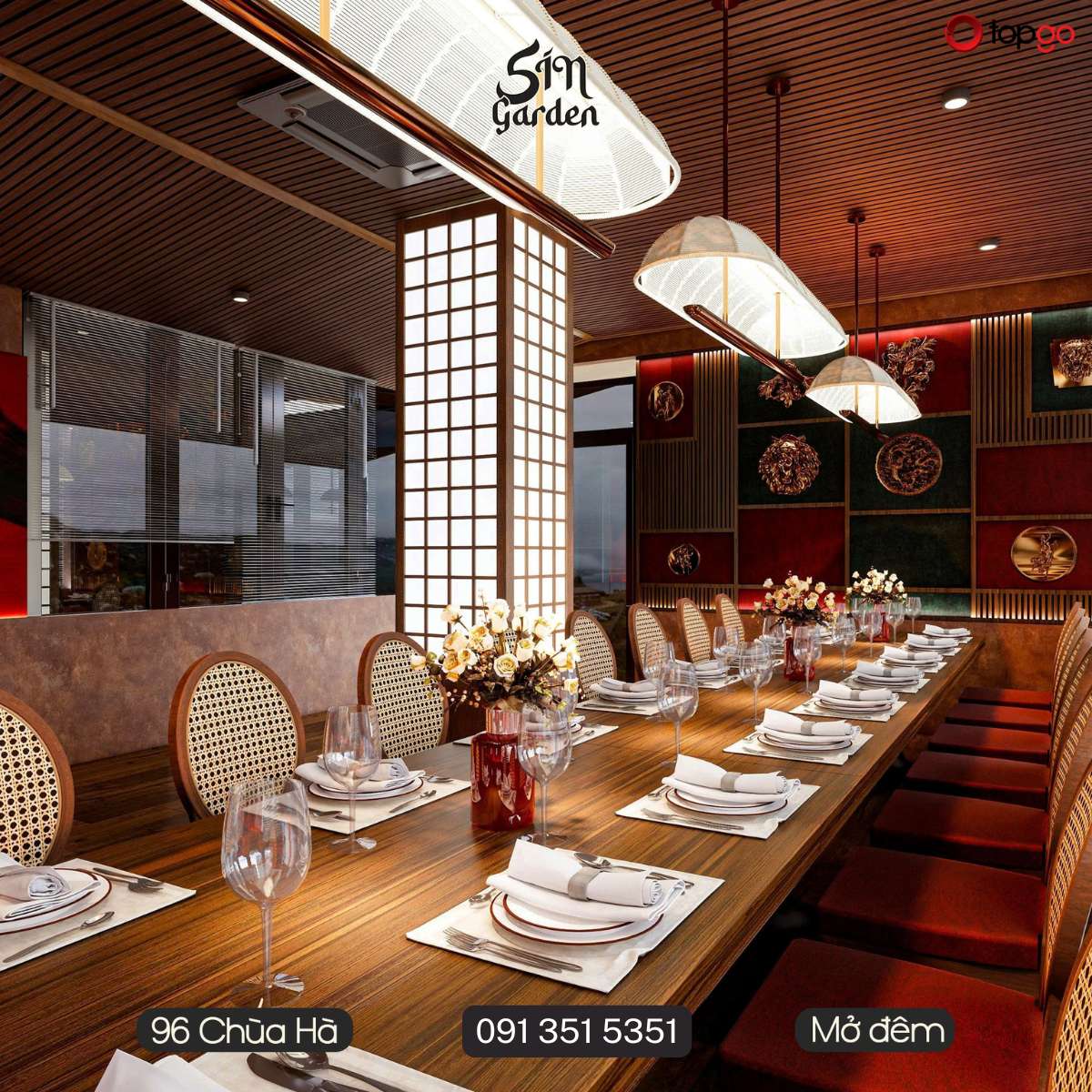 SIN Garden nổi bật với mô hình kết hợp không gian trong nhà và ngoài trời.Nhà hàng đem đến trải nghiệm thư giãn, tươi mới.
