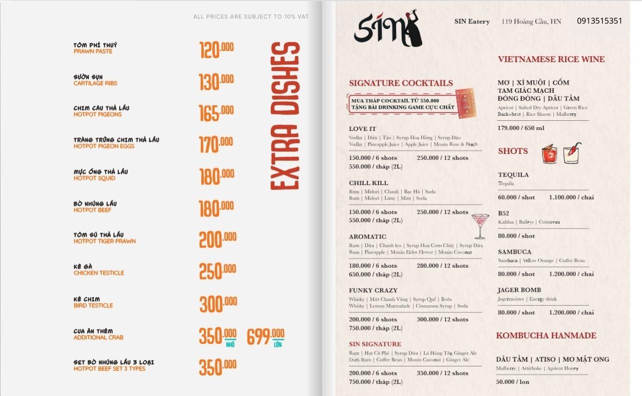 Dù là một bữa tối sum vầy hay một cuộc gặp gỡ ấm cúng, Sỉn tin rằng bạn sẽ tìm thấy món ăn “đúng vị”. Không cần dịp gì đặc biệt, chỉ cần bạn muốn ăn ngon còn lại cứ SIN lo. Đừng quên gọi ngay 0913515351 để được tư vấn miễn phí và đặt bàn nhanh chóng nhé!