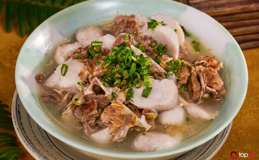 Nước dùng ngọt từ xương hầm kết hợp vị bùi béo của khoai sọ. Tạo nên món canh thanh đạm, dễ ăn. Món canh này không chỉ làm dịu vị giác sau các món chính đậm đà mà còn gợi cảm giác thân quen, mộc mạc.