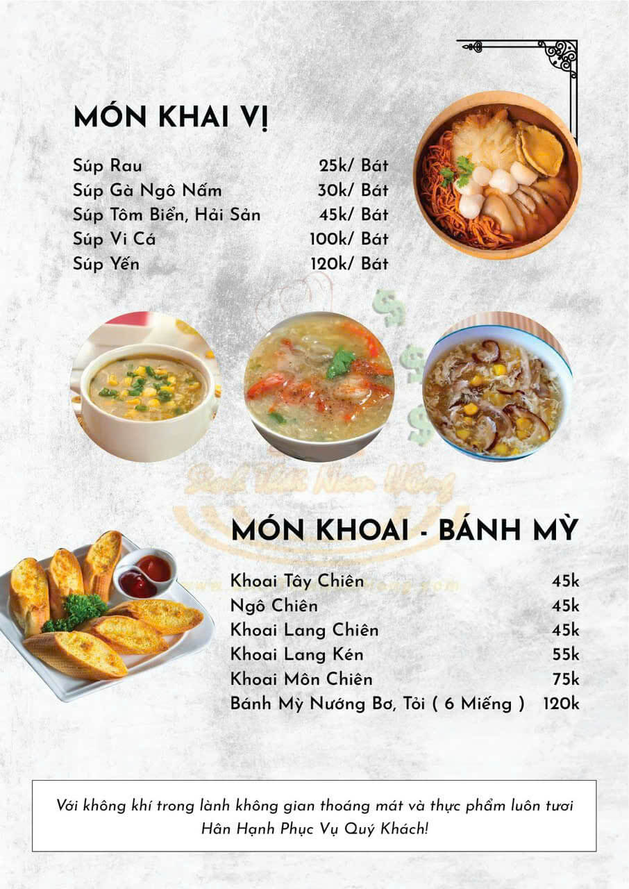 Thực đơn phong phú và hấp dẫn
